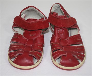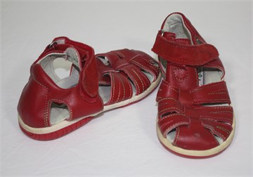 Kogi sandalice crvene boje, izvana i iznutra kožni. Gumeni džonovi, čičak traka.