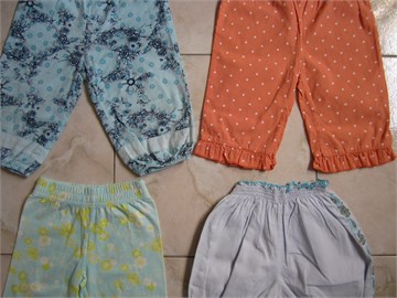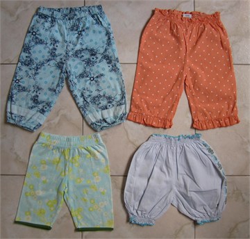 Komplet od 4 ljetnih hlačica, boje i uzorci kao na slici.