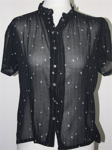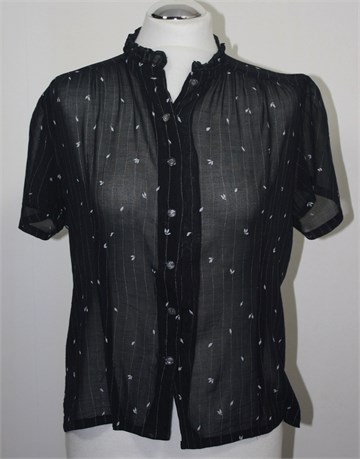 Košulja sa kratkim rukavima, crne boje sa printom i prugicama. Lagana i prozirna, ukrasni gumbi (plastični dijamantići).