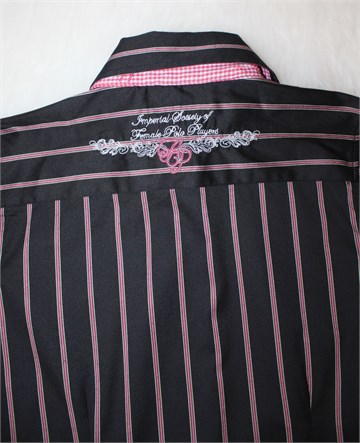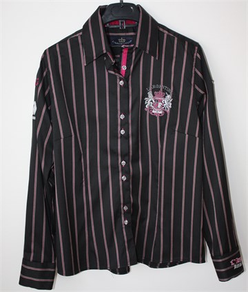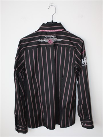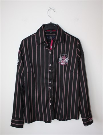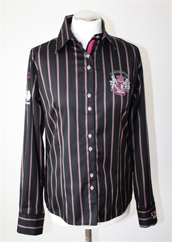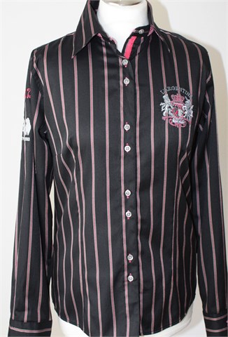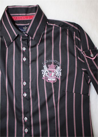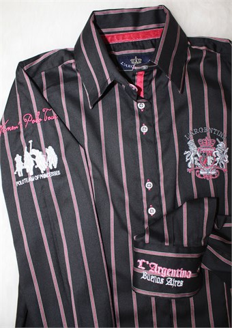 L'Argentina košulja sa dugim rukavima, crne boje sa prugama (rozo-bijelo-sivim). Prednje kopčanje, džepić na rukavu, blago strukirana. Aplikacije na prsima, rukavu, ispod kragne i na gornjem dijelu leđa (vidljivo na slikama). Blago rastezljiva.