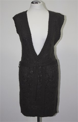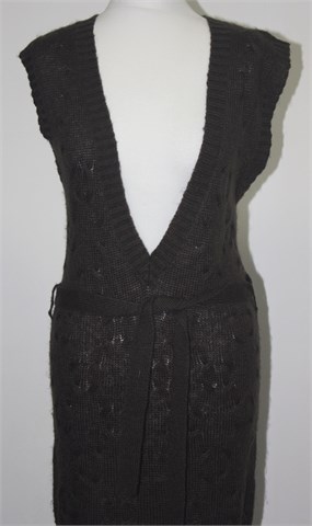 LBMM pletena tunika bez rukava, smeđe boje sa uzorkom pletenica. Vezanje u struku, mekano i tanko pletivo. Rastezljiva.