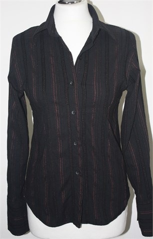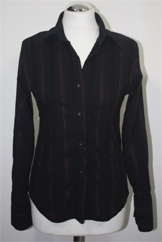 La Vanila košulja sa dugim rukavima, crne boje sa prugama u boji bakra. Prednje kopčanje, strukirana. Lagana i vrlo rastezljiva.