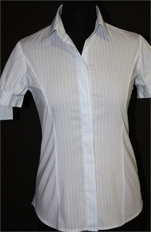 Labod košulja sa kratkim rukavima, prugasta kombinacija svijetlo plave i bijele boje. Vezice na krajevima rukava, prednje skriveno kopčanje. Strukirana, blago rastezljiva.