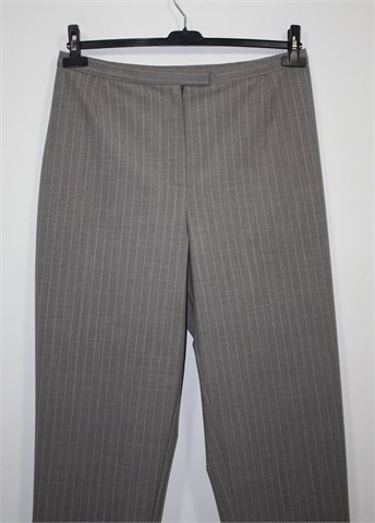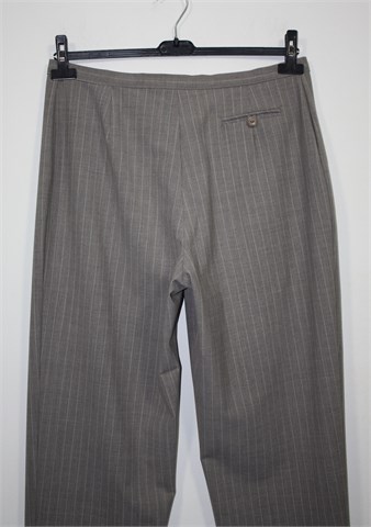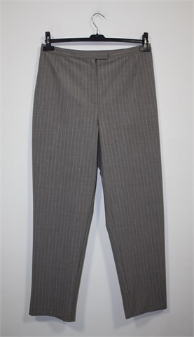 Laura Ashley hlače lijepog klasičnog kroja, sive boje sa svijetlim prugama. Prednji cif i kopčanje, jedan stražnji skriveni džepić sa gumbom. Tanji materijal, blago rastezljiv.