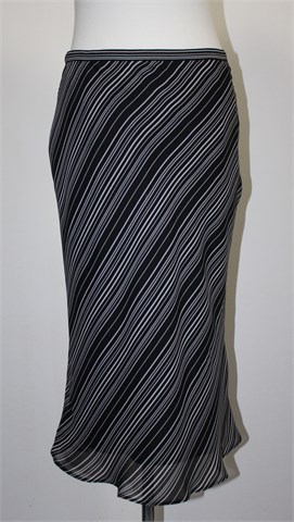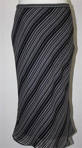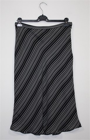 Laura Clement duža suknja crno-bijele boje. Bočni cif i gumbić, podstavljena. Lagan i lepršav materijal.