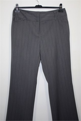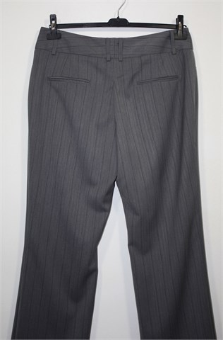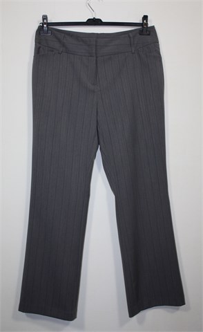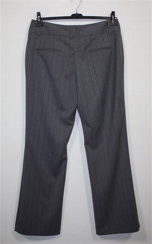 Laura Scott hlače od tanjeg i mekanog štofastog materijala, sive boje sa prugama i sitnim uzorkom riblje kosti. Prednji cif i kopčanje, pasica za remen. Prednji kosi džepovi, stražnji lažni ukrasni. Blago rastezljive.