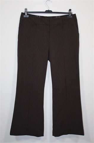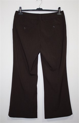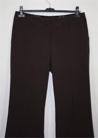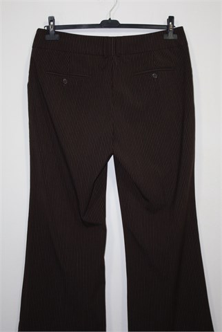 Laura Scott hlače tamno smeđe boje sa svijetlim prugama, klasični kroj i model. Prednji cif i kopčanje sa gumbom i kopčicama, pasica za remen. Prednji bočni, stražnji ukrasni džepovi. Blago rastezljive.