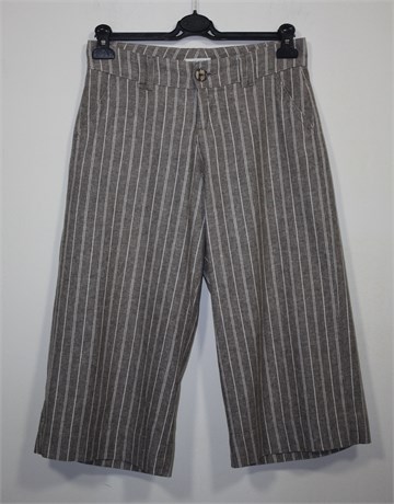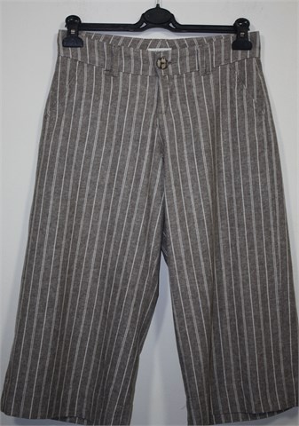 Lee poluduge ljetne hlače (odlična kombinacija lana i pamuka) prošarano smeđe boje sa bijelim prugama. Prednji cif i kopčanje, pasica za remen. Prednji bočni, stražnji ukrasni džepovi. Čvrst ali lagan i prozračan materijal, šire nogavice.