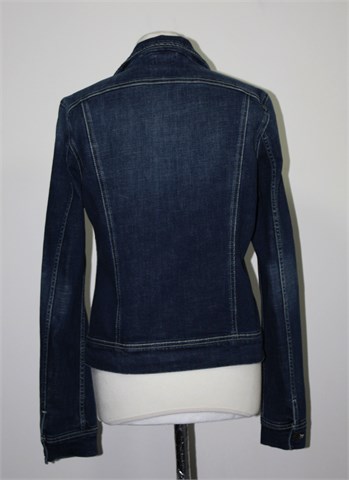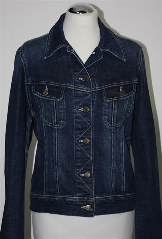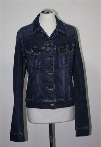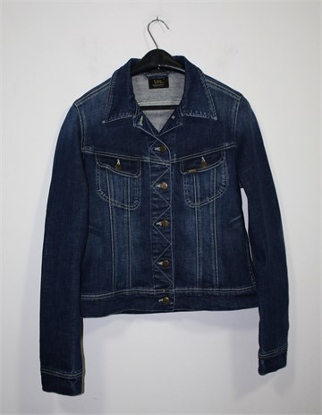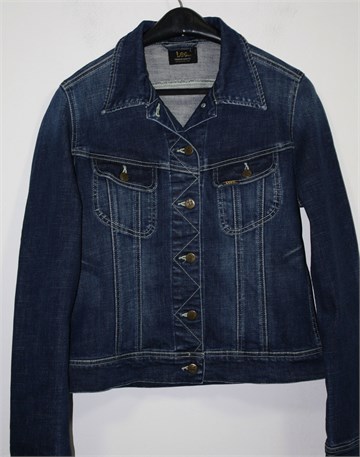 Lee traper jakna, tamnije plave boje mjestimično ispranog izgleda (used look). Prednje kopčanje, džepići sa preklopom i gumbom na prsima. Blago rastezljiva.