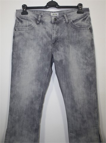 Life Time poluduge traper hlače, prošarano sive boje. Prednji cif i kopčanje, pasica za remen (sa stražnje strane ukrašena cirkonima). Prednji i stražnji klasični džepovi. Blago rastezljive, mali bočni prorezi na krajevima nogavica.