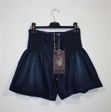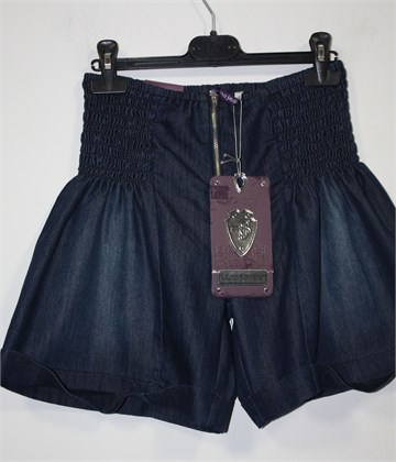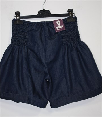 Lina kratke traper hlačice, tamnije plave boje. Bočno u struku prošivene sa gumicama pa je širina vrlo prilagodljiva (vidjeti mjere). Prednji cif, šire nogavice. Tanji i lagan traper.