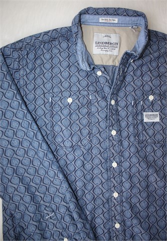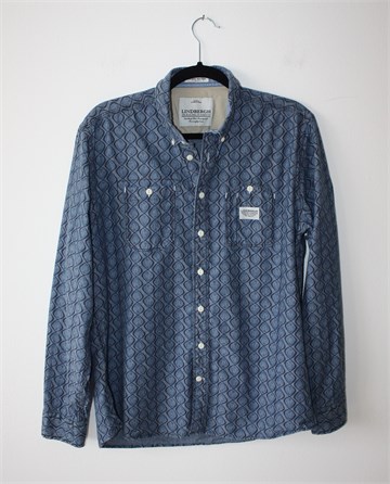 Lindbergh traper košulja sa dugim rukavima, plave boje sa printom (boje i uzorak printa vidljivi na slikama). Prednje kopčanje, džepići na prsima. Nije rastezljiva.