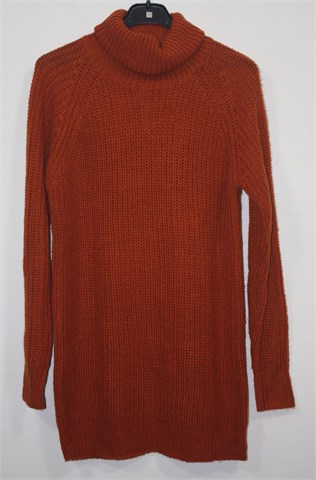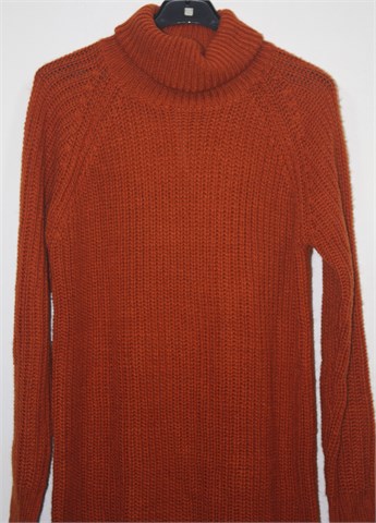 Lindex duži pulover/dolčevita tamnije zagasito narančaste boje (kao boja cigle). Rebrasto, mekano i rastezljivo pletivo.