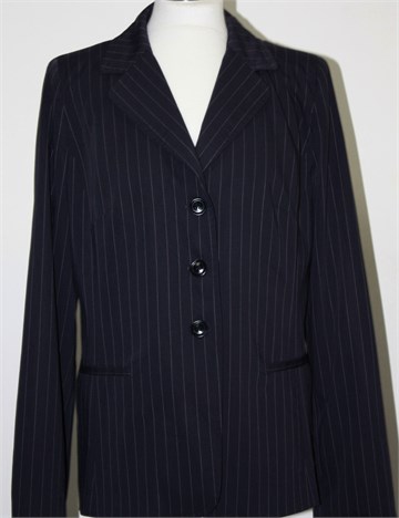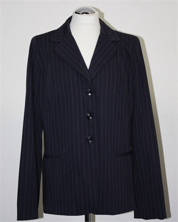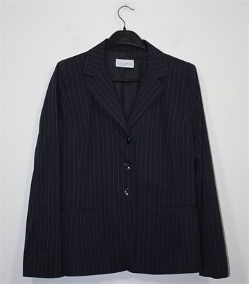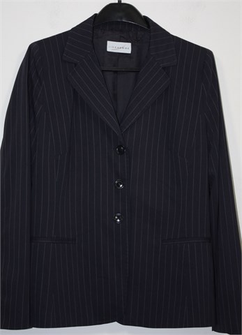 Lineaemme sako tamno plave boje sa svijetlim prugama, lijepog klasičnog kroja. Prednje kopčanje, bočni džepovi (još uvijek zašiveni). Blago strukiran, jastučići u ramenima (ušiveni). Podstavljen, blago rastezljiv.
