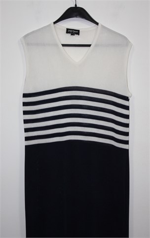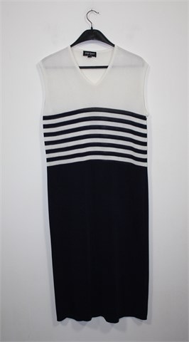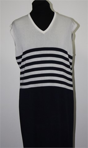 Liola Sport haljina bez rukava od tanjeg končanog pletiva, kombinacija plave i bijele boje (kao na slici). Rastezljiva i blago providna (odlična za slojevito oblaćenje).