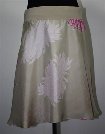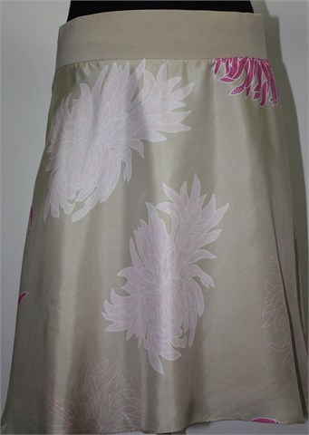 Liz Lange Maternity suknja za trudnice, svilena - svijetlo bež boje sa cvjetnim printom (boje printa kao na slikama). Guma u struku, podstavljena. Lagana i lepršava. Nešto je duža sa stražnje strane (vidjeti mjere). Ne mora nužno biti za trudnice (vidjeti mjere za klasične veličine).