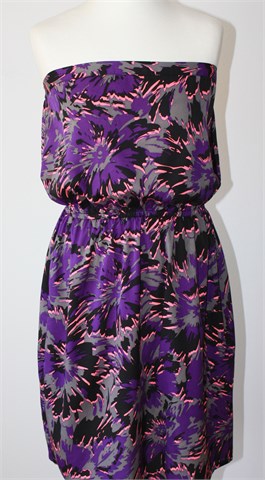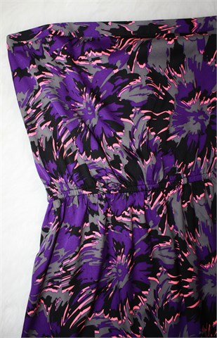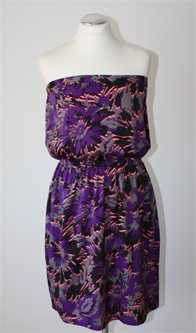 Love Label haljina bez naramenica sa šarenim printom (boje i uzorak printa vidljivi na slikama). U struku i na leđima gumica (prilagodljiva širina - vidjeti mjere). Tanka i lagana, blago rastezljiva. Bočni džepovi.