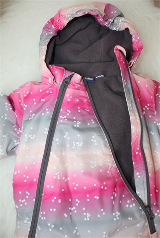 Lupilu skafander sa odvojivom kapuljačom (zakopčana je sa drukerima za ovratnik), podstavljena sivim flisom. Dva prednja cifa, reflektivna traka sa prednje strane.
