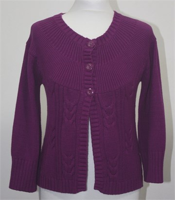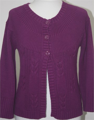 M&S kardigan/vesta na kopčanje ljubičaste boje, sa poludugim rukavima. Deblje i rastezljivo pletivo.