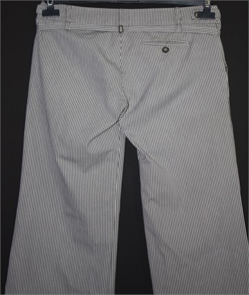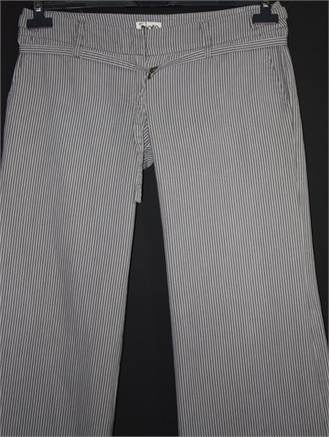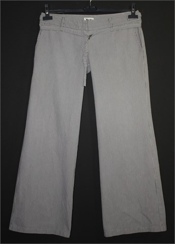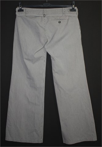 MOTO Topshop pamučne hlače, prugaste u kombinaciji bijele i sive boje. Hlače imaju prednji cif i kopčanje, pasicu za remen (sa fiksnim tankim remenčićem). Prednji bočni i jedan stražnji džep.
