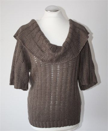 Madonna vesta svijetlo smeđe boje, rukavi su kraći i širi. Veći ovratnik (vidljivo na slikama), pletivo srednje debljine, rupičasto i rastezljivo.