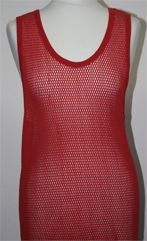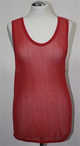 Rupičasta majica bez rukava crvene boje. Širi otvori oko rukava, oversized model. Lagana i rastezljiva.
