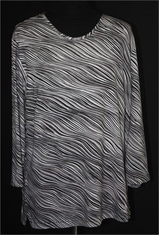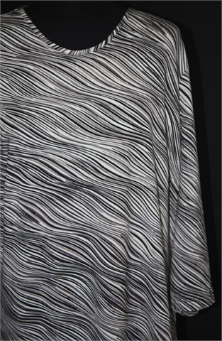 Majica/tunika bijele boje sa prošaranim uzorkom. Poludugi rukavi, mekan i rastezljiv materijal.