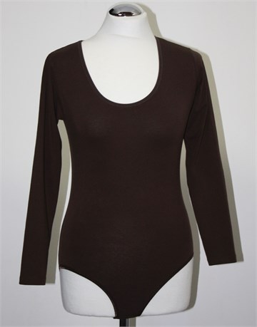 Majica/body sa dugim rukavima, smeđe boje. Kopčanje između nogu sa kukicama. Mekan i rastezljiv materijal.