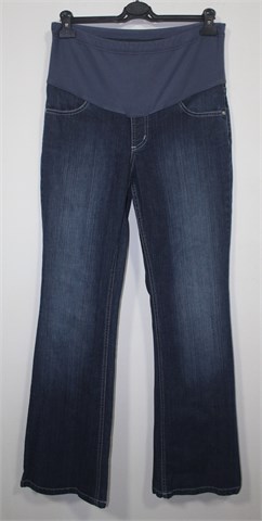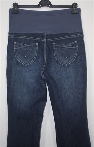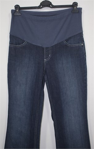 Mama Nova traper hlače za trudnice, srednje plave boje mjestimično ispranog izgleda (tvornički). Prednji i stražnji džepovi, blago rastezljive.