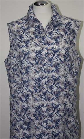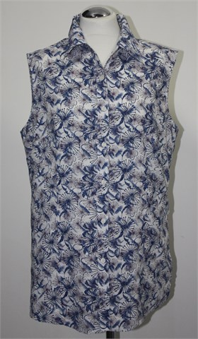 Mana košulja bez rukava, bijele boje sa cvjetnim printom. Lagan i blago zgužvan materijal pa je vrlo jednostavna za održavanje :) Mali bočni prorezi.