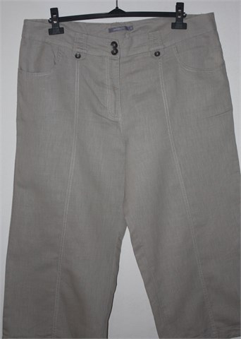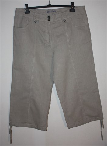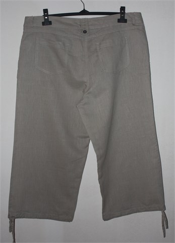 Mana poluduge hlače svijetlo bež boje. Prednji cif i kopčanje, pasica za remen. Prednji i stražnji klasični džepovi. Poluduge, lagane i prozračne. Vezice na krajevima nogavica.