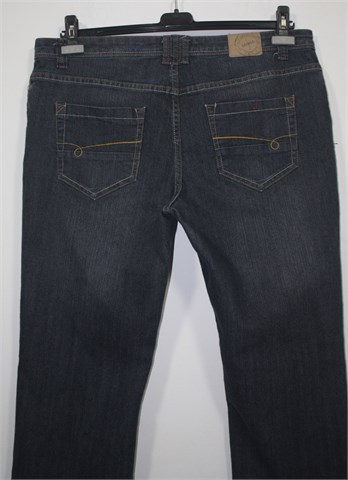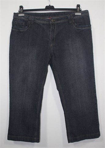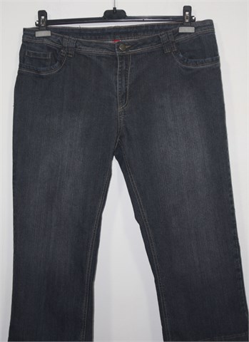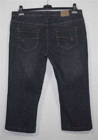 Mana poluduge traper hlače sive boje (mjestimično ispranog izgleda). Prednji cif i kopčanje, pasica za remen. Prednji i stražnji klasični džepovi. Rastezljive.