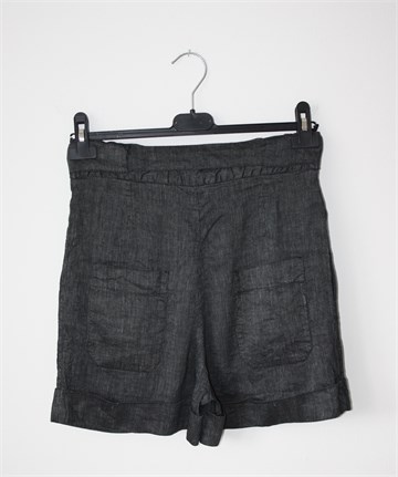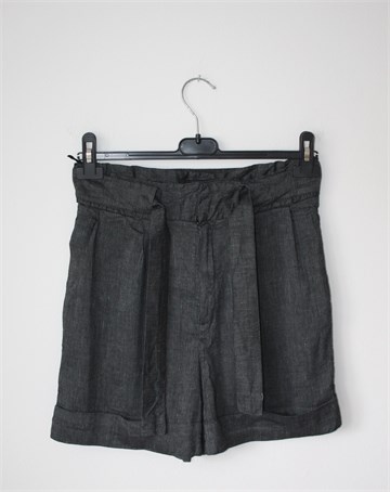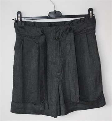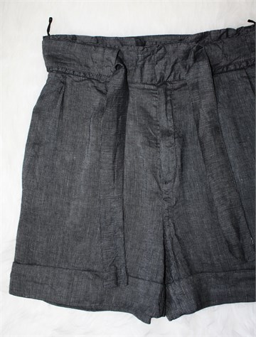 Mango Suit kratke hlače/bermude sive boje sa svijetlim prugama, odlična kombinacija lana i viskoze. U struku traka od istog materijala (može se skinuti), prednji cif i kopčanje sa kopčicama i gumbom. Prednji bočni i stražnji duboki džepovi. Dublji model (vidjeti mjere), nisu rastezljive. Tanje i lagane.