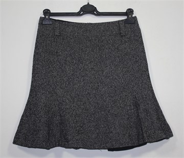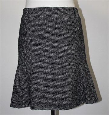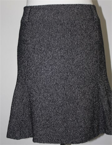 Mango Suit suknja prošarano crno-bijele boje, materijal je deblji i mekani štof. Pasica za remen, stražnji cif. Podstavljena, mekana i topla.