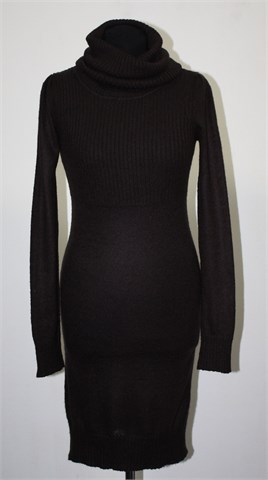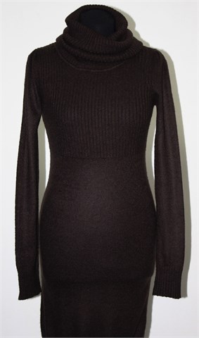 Mango Collection pletena haljina/tunika sa dolčevita ovratnikom, tamno smeđe boje. Tanje i mucasto pletivo, vrlo rastezljivo.