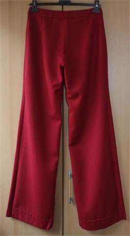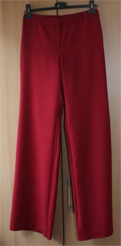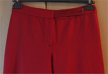 Prekrasne hlače ravnih i širih nogavica. Prednji cif i kopčanje, imitacija remena sa dvije vezice. Nemaju džepove. Djelomično podstavljene, do cca duljine koljena. Nisu rastezljive.