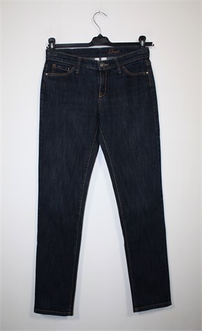 Mango jeans traper hlače tamnije plave boje, oznaka modela Donna. Prednji cif i kopčanje, pasica za remen. Prednji i stražnji klasični džepovi, blago rastezljive. Uske nogavice.
