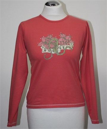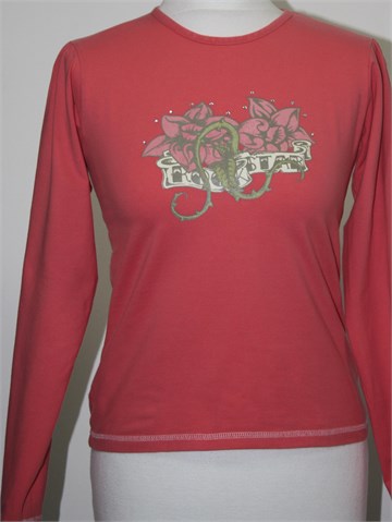 Manguun kids majica sa dugim rukavima, narančaste boje sa prednjim printom i ukrasnim cirkonima. Deblji i rastezljiv pamuk.