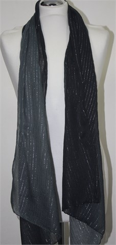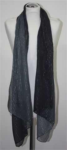Široka marama/pašmina u sivim tonovima, protkana sa srebrnim nitima. Lagana i mekana.
