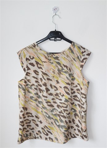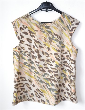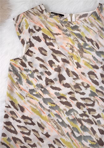 Marc Aurel bluza sa kratkim rukavićima i printom (boje i uzorci printa vidljivi na slikama). Stražnji cif, nije rastezljiva. Tanja i lagana.