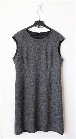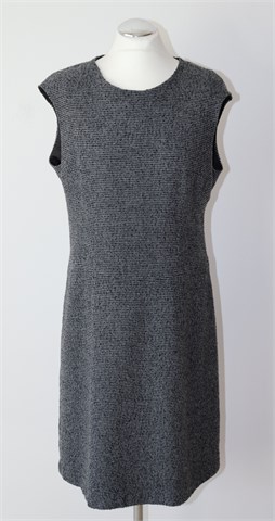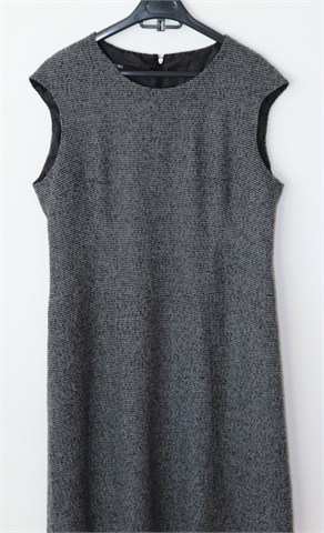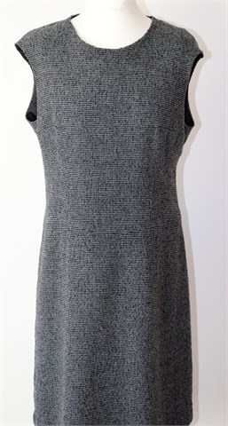 Marc Aurel haljina bez rukava, prošarano crno-sivo-bijele boje. Stražnji cif, podstavljena. Blago strukirana, nije rastezljiva.