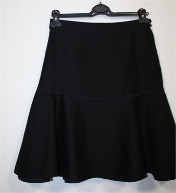 Marc Jacobs prekrasna suknja crne boje. Bočni cif i kopčanje sa dva gumba, podstavljena (na dno podstave je našivena ukrasna trakica koja proviruje na dnu suknje - ista trakica našivena je na samoj sredini suknje). Prekrasan i kvalitetan pamuk, čvrst i blago rastezljiv.