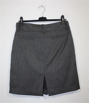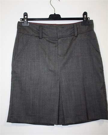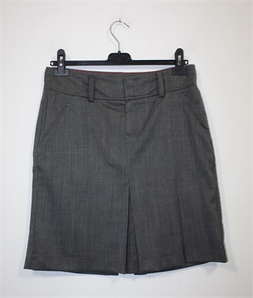 Marc O'Polo suknja prošarano sive boje. Prednji cif i kopčanje, šira pasica za remen. Prednji bočni, stražnji skriveni ukrasni džepovi. Sa prednje strane faldica, sa stražnje mali rasporak (po sredini suknje). Tanji i mekan materijal, blago rastezljiv.