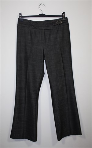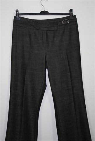 Marks & Spencer hlače prošarano tamnije sive boje. Prednji cif i kopčanje (jedna unutarnja kopčica je odšivena ali ne smeta kod nošenja), ukrasni remenčić. Lagan i vrlo blago rastezljiv materijal (pomalo boja djeluje kao traper).