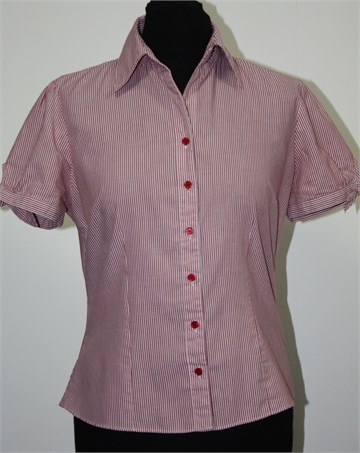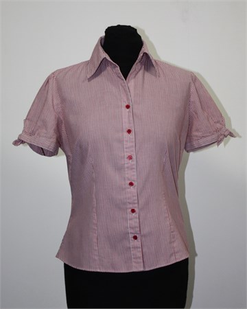Marks & Spencer košulja sa kratkim rukavima, bijele boje sa blijedo crvenim prugama. Prednje kopčanje sa crvenim gumbima, blago strukirana. Vezice na krajevima rukava. Tanji i lagan materijal, nije rastezljiv.