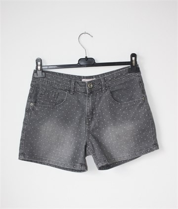 Marks & Spencer Angel kratke traper hlače sive boje sa točkicama, mjestimično ispranog izgleda (used look). Prednji cif i kopčanje, pasica za remen. Prednji i stražnji džepovi, blago rastezljive.