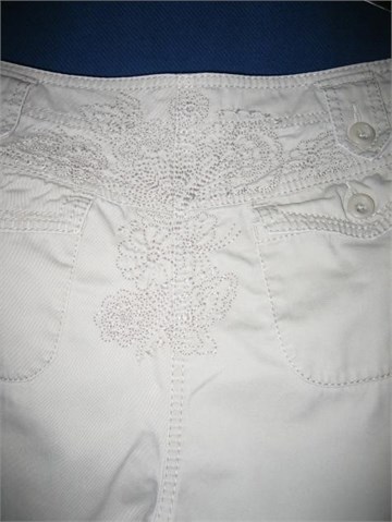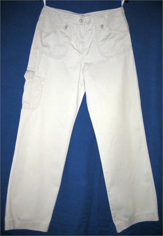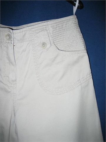 100% pamuk, ukrasni džepići, ukrasni prošivi od konaca sa stražnje strane, nenošene, samo oprane, materijal kao keper, dakle mogu se nositi po zimi i po ljeti