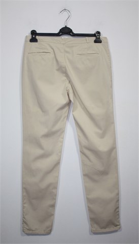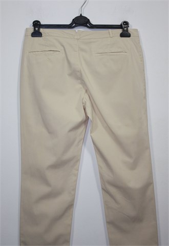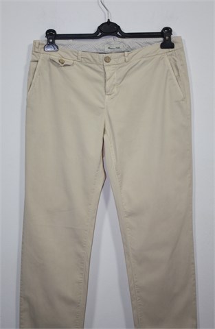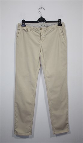 Massimo Dutti hlače chino kroja nude-bež boje. Prednje kopčanje, uska pasica za remen i mali ukrasni džepić. Prednji bočni, stražnji ukrasni džepovi. Šire u gornjem dijelu, nogavice se pri dnu sužavaju (odlično stoje). Tanji i rastezljiv materijal.