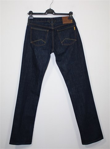Meltin'Pot traper hlače tamnije plave boje. Prednji cif i kopčanje, pasica za remen. Prednji i stražnji klasični džepovi. Oznaka modela - mash. Nisu rastezljive, skraćene.