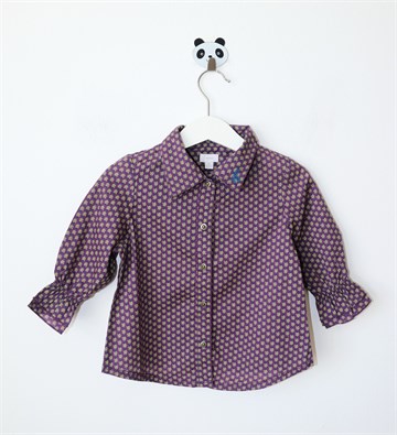 Mexx košulja sa dugim rukavima, ljubičaste boje sa plavo-zelenim cvjetnim printom. Prednje kopčanje sa drukerima, rukavići su pri dnu stegnuti gumicama.